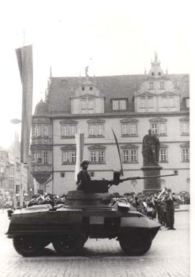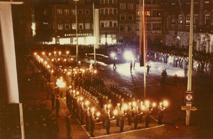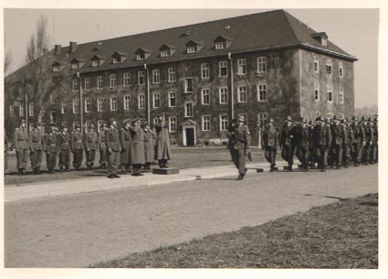 Wir wurden manchmal auch zu Feierlichkeiten angefordert/abgeordnet. Auffallend ist, daß entweder Ltn.Rogge den falschen Schritt hat oder der Zug. Vorne, von links: Hermann Ruth, Geerds und Hahnhausen!