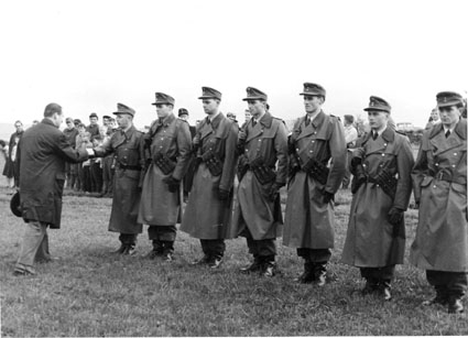 Unterschiedliche Marsch-und Ehrenformationen für eine der damals jährlich stattfindenden deutsch-amerikanischen Freundschaftstage. Der Offizier ist Adjutant Hptm.i.BGS U.Wegener Bilder:G.Praschil